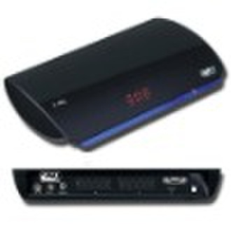 HD DVB-T MPEG4/H.264 Receiver with HDMI 1.Features •Fully HD DVB-T MPEG4/H.264 compliant •Support MPEG1/2/4 H.264 HD format,DRM •USB2.0(High speed) ,support USB-OTG •Support 1080i High Definition video(HDMI socket) output • Electronic Program Guide(EPG) and channel editing •Support VBI & OSD Teletext,OSD Subtitle,Teletext,LCN •Upgrade software through USB socket,Media Playback,PVR function•Parental lock control 2. Audio/Video Decode: Audio Decode: MPEG1 layer I, MPEG1 layer II, MPEG1 layer III, MPEG2 AAC,MPEG4 HE-AACDigital:0.5 ± 0.1 Vp-p(Coaxial) Frequence Response: 20Hz-20KHz( at 1KHz 0 dB) Signal/noise Ratio(Audio):≥90 dB( at 1KHz 0 dB) Distortion(Audio):≤-60 dB ( at 1KHz 0dB) Channel Separation 1KHz: ≥80 dB(Mixed Output) Dynamic Range: ≥80 dB Video Output: Video Decoe:High Definition MPEG4 AVC/H.264 HP@L4,MPEG-2 MP@HL/ML Composite:1.0±0.2Vp-p Load impedance: 75Ω, imbalance, negative polarity Max Resolution: 1080i(HDMI output) RGB:700±140mV p-p, 75Ω 3.Power Supply: Power consumption: 18W Power Source: 100-250V 4.Input/Output Sockets: • HDMI V1.3 output • Composite video output • SPDIF Coaxial digital audio output • Full Scart output (RCA optional) • DVB-T RF antenna input PAN/NTSC Automatic PAL/NTSC conversion OSD Language English,French,Portuguese,Spanish,German,Polish,Italian ,Czech,Dutch,Greek, Estonian,Latvian,Lithuanian,Russain. EPG Fully support to 7 days Electronic Program Guide(EPG) 256 Color OSD 256 colors On Screen Display Channel Search Channel search in automatic, manual and network search Channel Edit Various channel editing (favorite,move,lock,skip,delete,rename,find,sort) Parental Ctrl Parental control for channels Easy Menu Plug and Play installation, with an ease to use Menu System Time Set Time set by GMT offset automatic and manual,Summer Time support Teletext Teletext support DVB ETS300472 by VBI and OSD LCN Support Logic Channel Number(LCN) Act-Ana Ctrl Active Antenna Power supply control