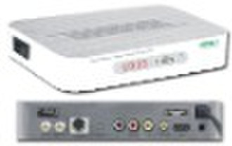 HD Full Seg ISDB-T Set Top Box 1.Feartures •H.264 digital ISDB-T compliant •Support MPEG1/2/4 H.264 HD format,DRM support •USB2.0(High speed) ,support USB-OTG •Support 1080i High Definition video(HDMI socket) output • Electronic Program Guide(EPG) and channel editing •Subtitle & Telsetext Support •Suitable for Brasil,Argentina,Chile and Peru Digital TV system 2.Audio/Video Decode: Audio Output: Analogue:2.0+0-1.0Vrms Digital:0.5 ± 0.1 Vp-p(Coaxial) Max sampling rate:24bit/192KHz Frequence Response: 20Hz-20KHz( at 1KHz 0 dB) Signal/noise Ratio(Audio):≥90 dB( at 1KHz 0 dB) Distortion(Audio):≤-60 dB ( at 1KHz 0dB) Channel Separation 1KHz: ≥80 dB(Mixed Output) Dynamic Range: ≥80 dB Video Output: Composite:1.0±0.2Vp-p Load impedance: 75Ω, imbalance, negative polarity Max Resolution: 1080i(HDMI output) RGB:700±140mV p-p, 75Ω 3.Input/Output Sockets: HDMI V1.3 output Composite video output SPDIF Coaxial digital audio output RCA output ISDB RF antenna input Channel Search Channel search in automatic, manual and network search Channel Edit Various channel editing (favorite,move,lock,skip,delete,rename,find,sort) Parental Ctrl Parental control for channels Easy Menu Plug and Play installation, with an ease to use Menu System Time Set Time set by GMT offset automatic and manual,Summer Time support